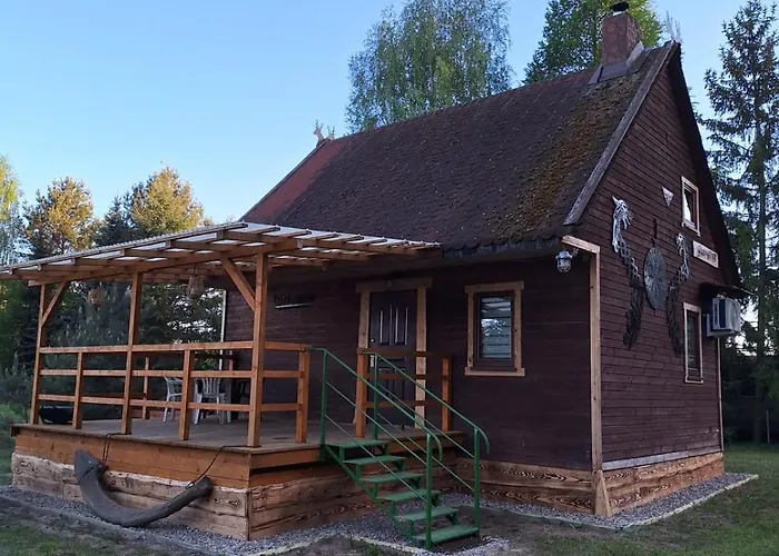 Situated 2.6 km from Jezioro Jagodne, Etno Baza - Domek Pod Lasem Przy Jeziorze Na Mazurach invites guests to relax at a terrace.